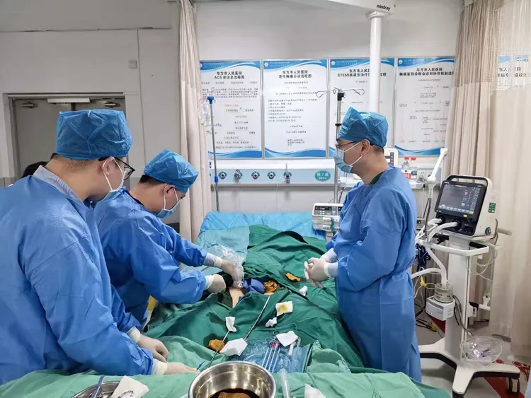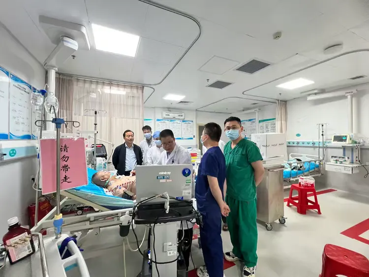 抢救室内,仪器的滴答声与医护人员的指令声交织成生死竞速的节拍。院内团队各司其职:急诊科医师紧盯气道通畅,随时调整呼吸机参数;重症医学科医师持续优化血流动力学管理,精准调控补液速度与升压药物剂量;CCU医师目不转睛监测心脏功能,捕捉每一个细微的指标变化。屏幕另一端,海医二院专家团队全程在线,针对患者血压波动、心肌酶谱变化等情况,实时调整治疗方案,为抢救提供“云端”支撑。