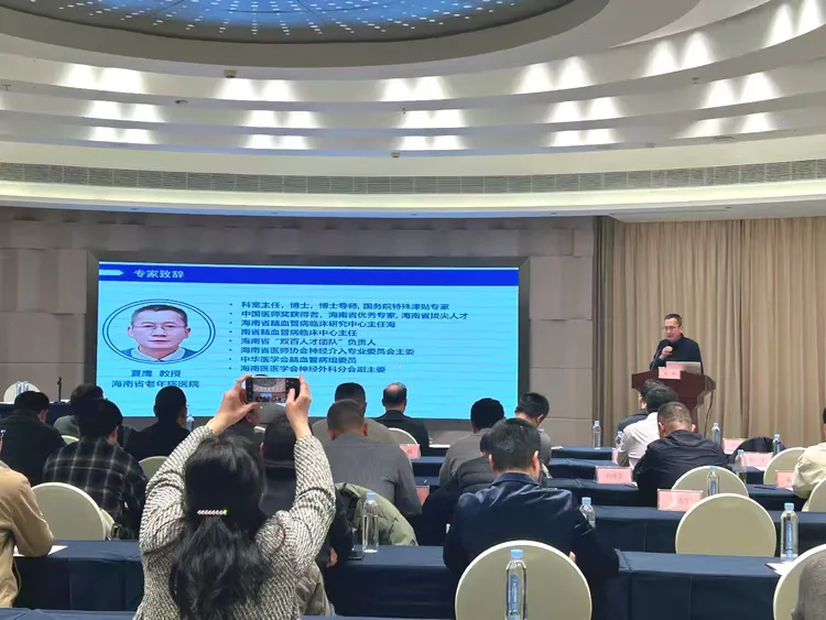 ↑海南省老年病医院夏鹰教授在致辞中表示,随着神经介入技术的普及,临床的早期识别与规范处置愈发重要,希望与会专家畅所欲言、分享真知灼见,共同筑牢脑血管病诊疗的安全防线。