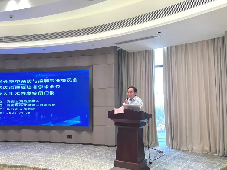 2026年1月9日,由海南省预防医学会卒中预防与控制专业委员会主委单位海南医科大学第二附属医院神经内科主办、东方市人民医院承办的脑血管病诊治新进展学术会议——神经介入手术专题研讨在东方市启幕。本次会议以“聚焦临床难点、共探防控策略”为核心,汇聚省内脑血管病领域顶尖专家学者,通过专题授课、病例研讨等形式,为区域医疗同仁奉上了一场兼具理论高度与实践价值的学术盛宴。