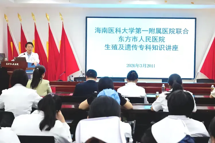 为切实解决东方及周边地区群众在不孕不育、优生优育领域的就医难题,推动优质医疗资源下沉基层,免除患者长途奔波之苦,2026年3月20日,海南医科大学第一附属医院(以下简称“海医一附院”)生殖科、产科及胎儿医学科专家团队,携手东方市人民医院举办生殖健康义诊活动。活动同步开展基层医师遗传专科知识培训,以“技术帮扶+惠民服务”双轨并行模式,为当地群众及医护人员提供专业医疗支持。