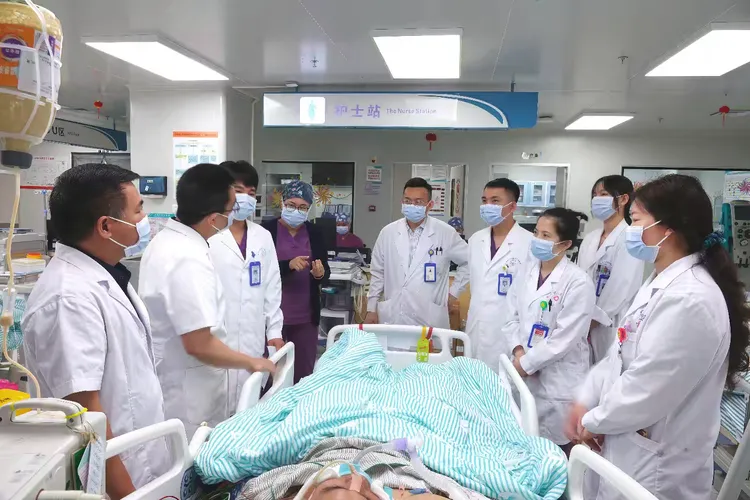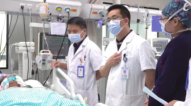 19:49,距离接诊仅44分钟,患者突发意识障碍,呼之不应陷入深度昏迷,脉搏氧饱和度直线下降,呼吸、循环功能濒临衰竭,随时可能心跳骤停。危急关头,急救团队沉着应战,快速实施气管插管,连接有创呼吸机辅助呼吸,同步静脉用药稳定循环、监测各项生命体征....历经近3小时的全力奋战,至22:30,患者意识逐渐恢复,呼吸、循环体征逐步平稳,这场惊心动魄的抢救终获成功。